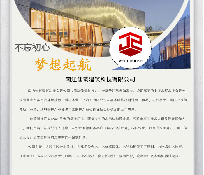 主要產(chǎn)品:膠合木,樟子松,南方松,花旗松,碳化膠合木,防腐木,木結(jié)構(gòu)設計,木結(jié)構(gòu)材料一站式供應 |