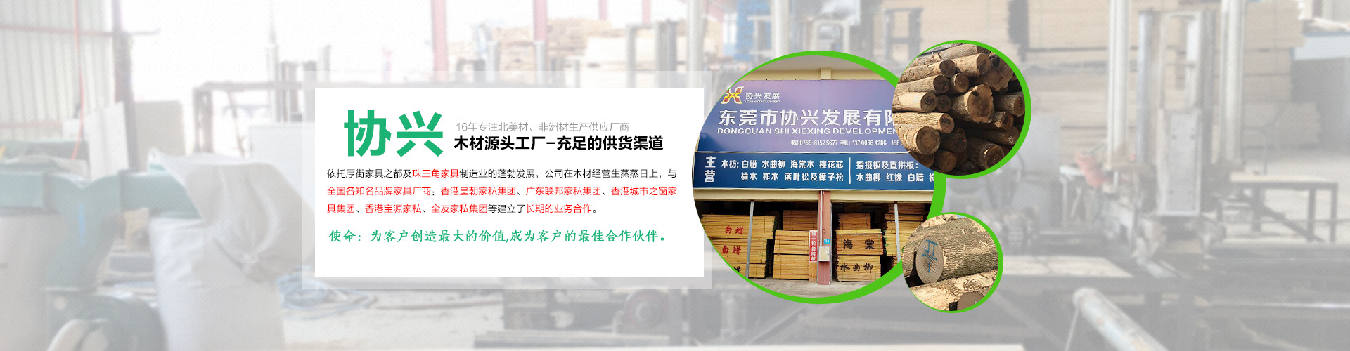 東莞市協(xié)興發(fā)展有限公司的前身是祥寧木業(yè),公司成立2002年,是一家專注家居木材生產(chǎn)供應(yīng)的優(yōu)質(zhì)供應(yīng)商,源頭工廠,主要經(jīng)營1 北美材:白臘木,紅橡,黑胡桃,白橡。2 東北材:水曲柳,柞木,榆木,楸木。3 非洲材&巴新材:海棠木,桃花芯,核桃木,沙比利等。4 直拼板及指接板:水曲柳,白臘木,榆木,橡膠木,松木。5 沙發(fā)料及床板料升級項目:落葉松及樟子松。依托厚街家具之都及珠三角家具制造業(yè)的蓬勃發(fā)展,公司在木材經(jīng)營生蒸蒸日上,與全國各知名品牌家具廠商:香港皇朝家私集團(tuán)、廣東聯(lián)邦家私集團(tuán)、香港城市之窗家具集團(tuán)、香港寶源家私、全友家私集團(tuán)等建立了長期的業(yè)務(wù)合作。木材源頭工廠,完事的售后服務(wù)體系及充足的供貨渠道是公司贏得眾多客戶的根本保證。 |